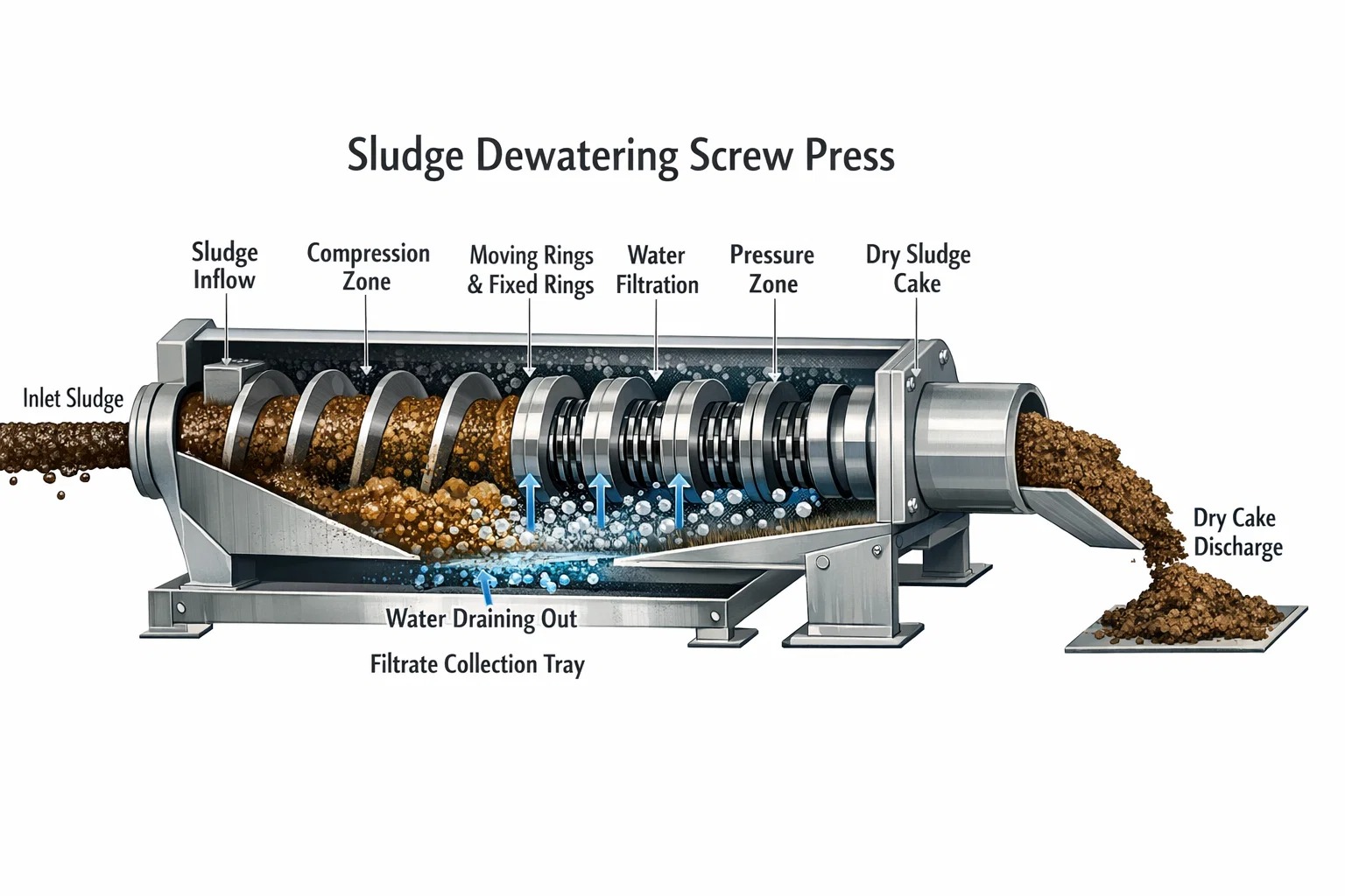 3. Back-finem solidorum: Sludge Dewatering stupra Press